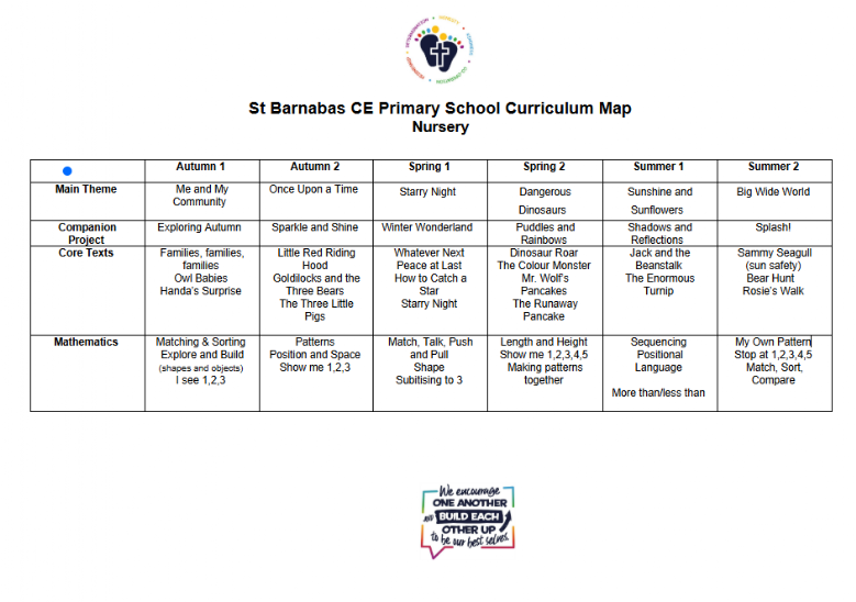 Direct Maths teaching takes place during carpet time twice a week following the White Rose Scheme. Maths activities and resources are always available in the continuous provision. Later in the year Ten Town is introduced and used to support the learning of number recognition, formation and subitising.